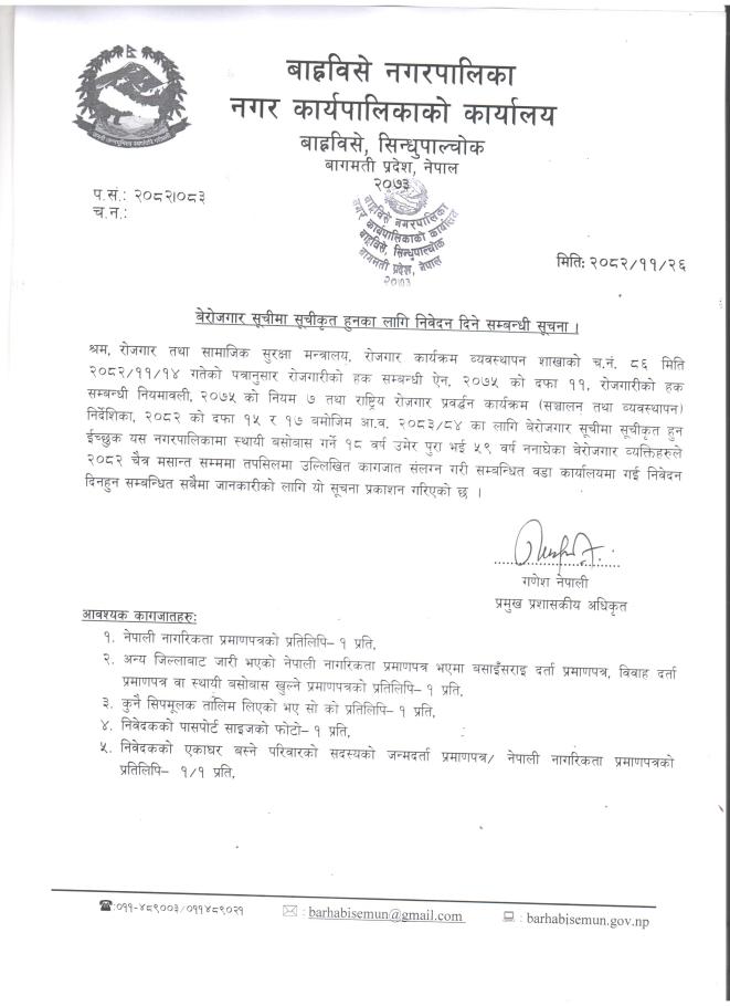 बेरोजगार सूचीमा सूचीकृत हुनकाे लागि निवेदन दिने सम्बन्धमा ।