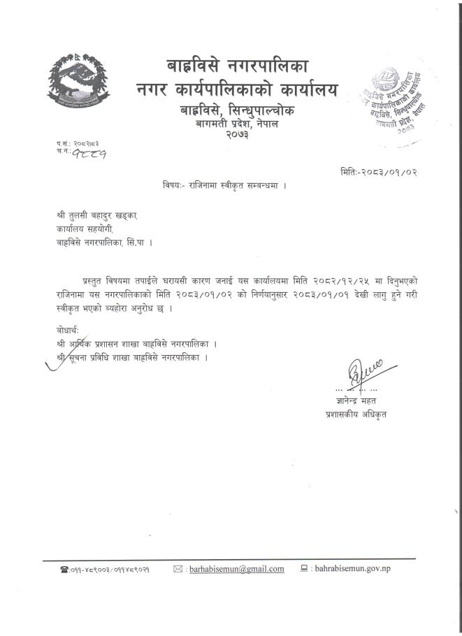 राजिनामा स्वीकृत सम्बन्धमा ।