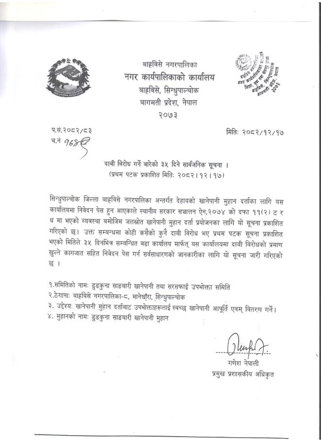 Home » दाबी विरोध गर्ने बारेको ३५ दिने सार्वजनिक सूचना ।