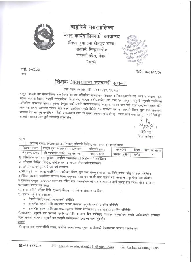 Home » शिक्षक आवश्यकता सम्बन्धी सूचना ।