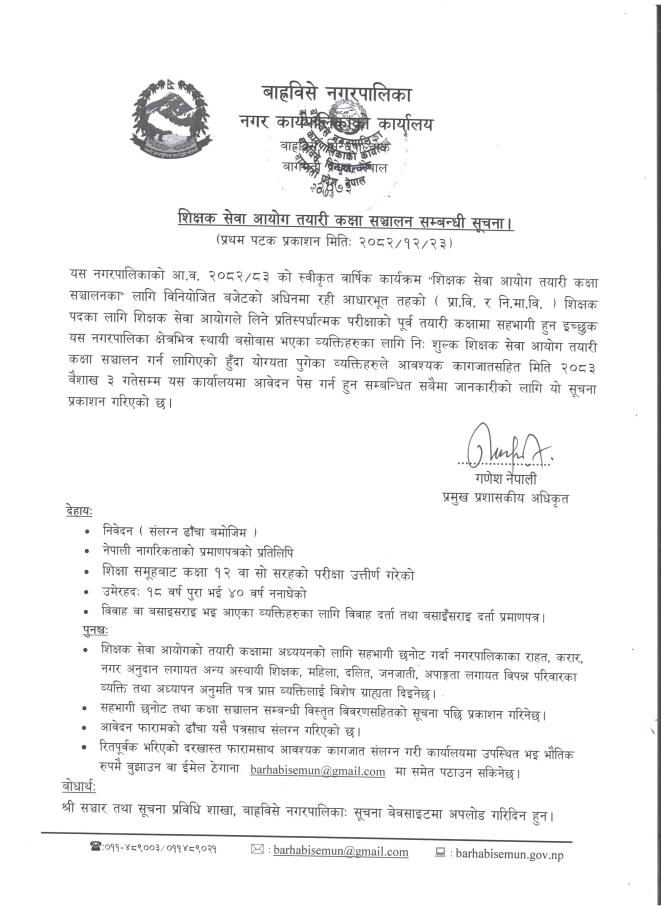 शिक्षक सेवा आयोग तयारी कक्षा सञ्चालन सम्बन्धी सूचना ।