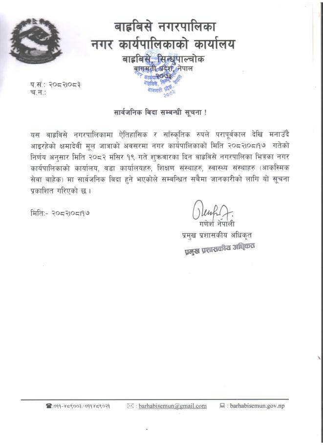 Home » सार्वजनिक बिदा सम्बन्धी सूचना ।