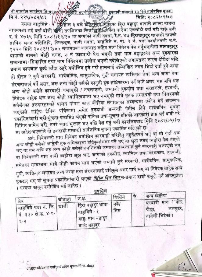 Home » हकदाबी सम्बन्धी ३५ दिने सूचना ।